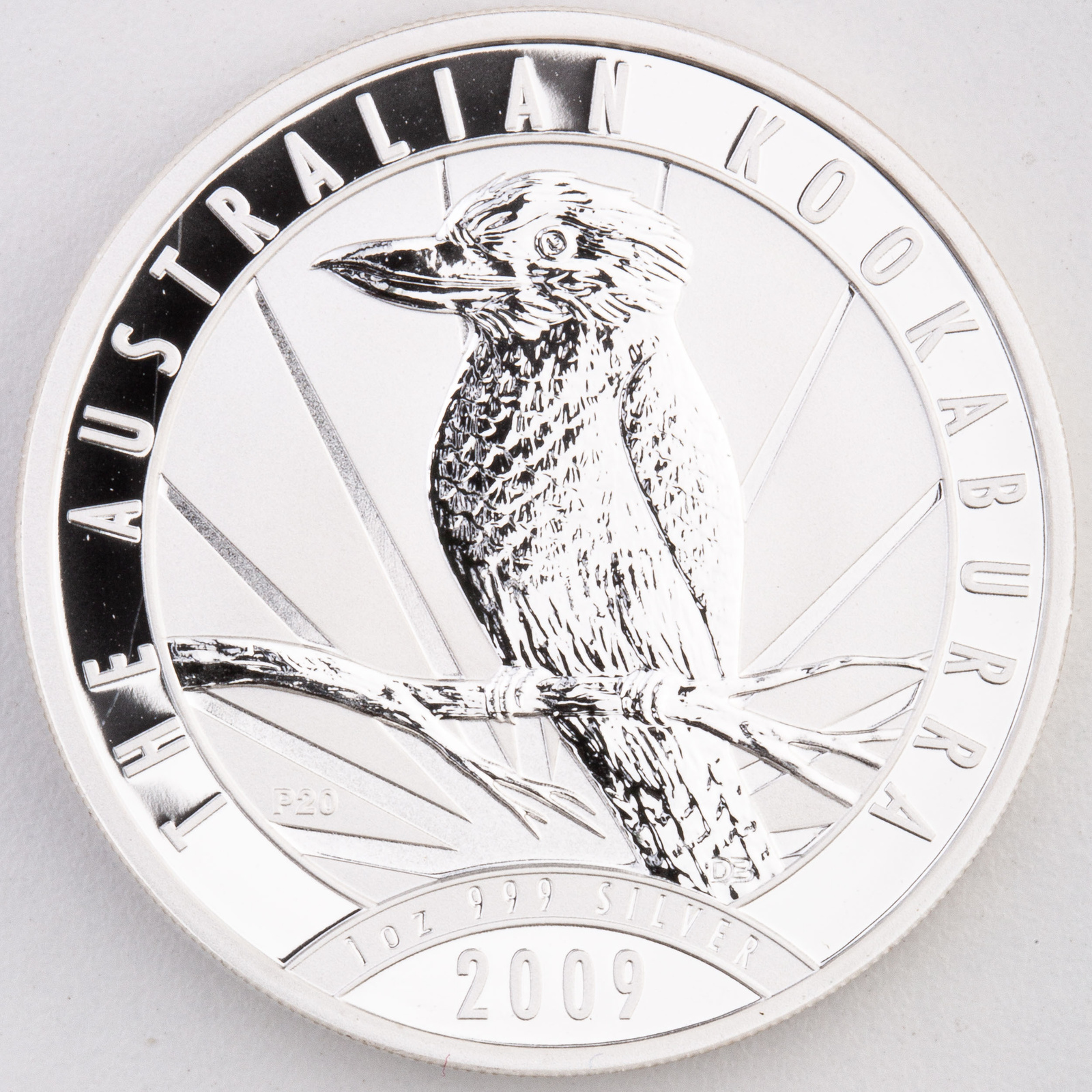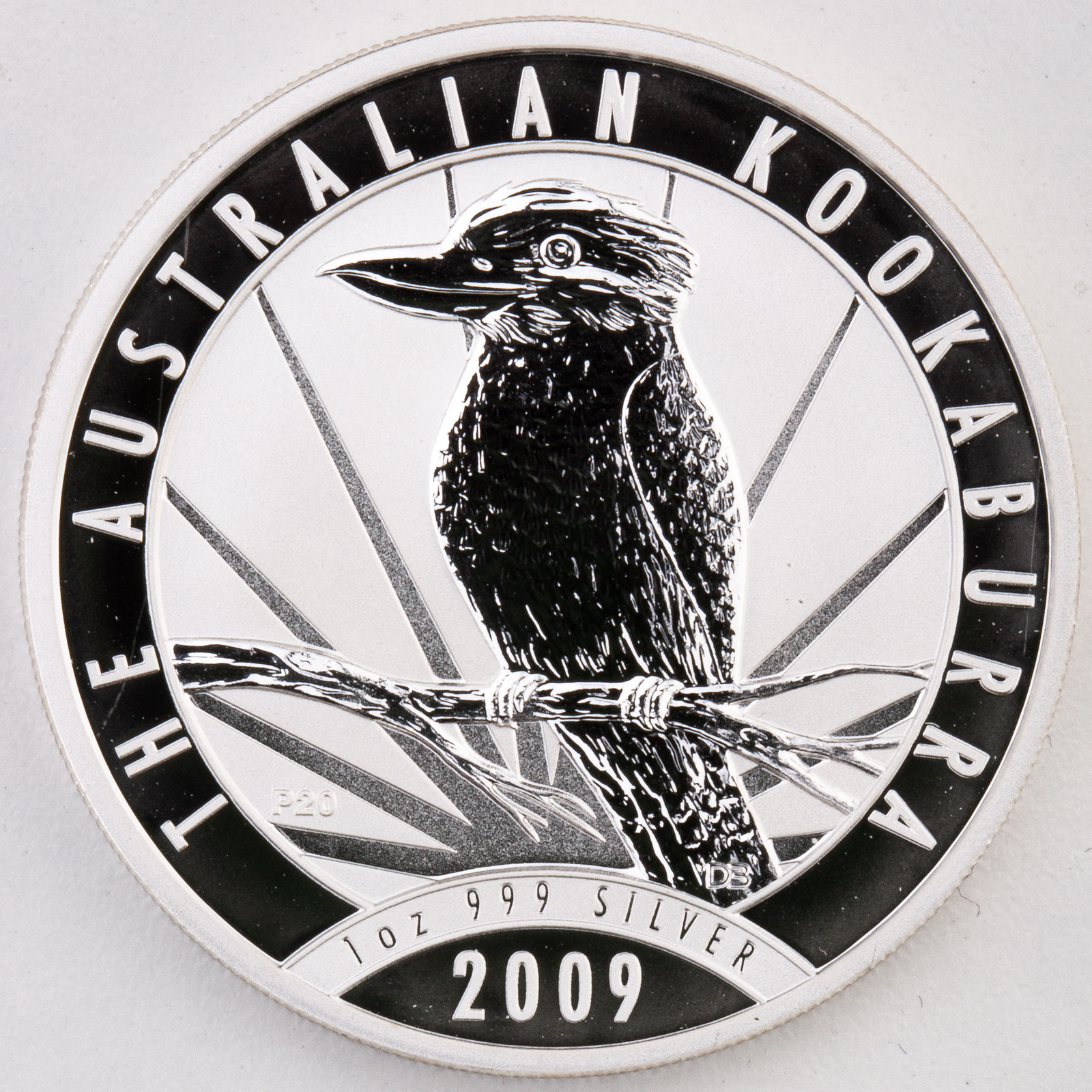 - Sebrny australijski Kookaburra z 2009 roku o nominale 1 dolara.