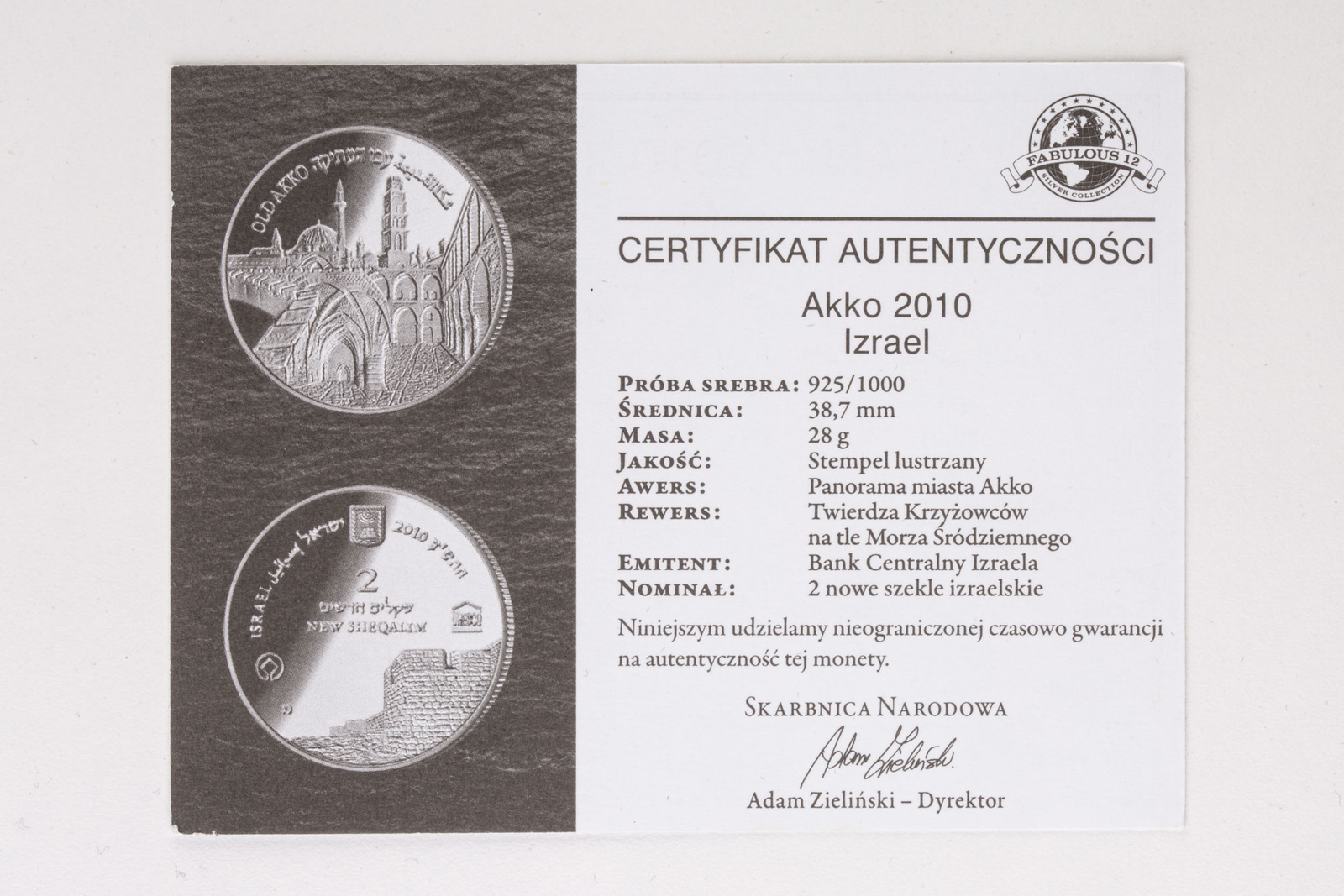 • Srebrna moneta Izrael - 2 nowe szekle 2010 - Akko światowe dziedzictwo UNESCO.